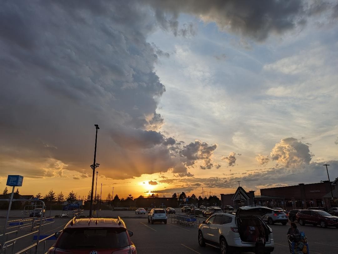 While loading the van, I paused and looked at the sky over Walmart. It...was...glorious! As I gazed on the heavens above, I found myself reciting the second and third stanzas of "Each in His Own Tongue" by Carruth. For whatever reason, the third has always been my favorite.